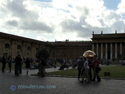 For some reason God must have thought that we needed to be cleansed before entering the Vatican museum as he released a torrent of rain upon us. It was as if he dropped buckets of water over our heads. We were drenched going from the bus to the entrance of the museum. In Italy it can come down so suddenly and the water rushes down the sidewalks and gutters. In the autumn an umbrella is useless, you really should have some plastic to put on like a poncho and plastic boots, even if they look awful.